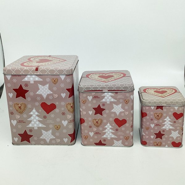 Three-Piece Christmas Rectangle Food Gift Candy Metal Tin Box